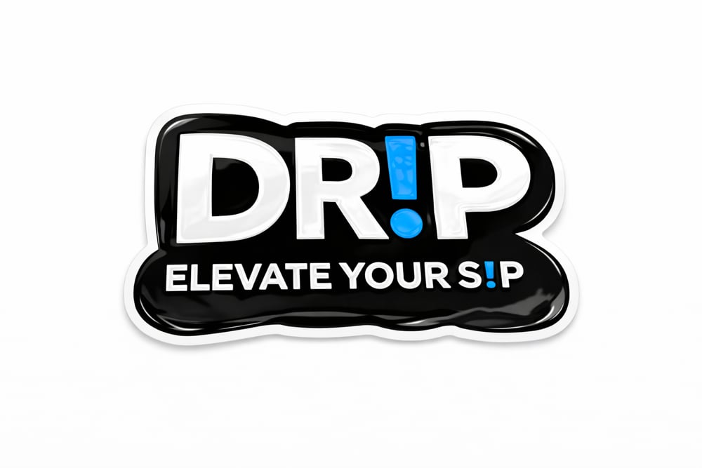 A bold stack of glossy, die-cut DR!P logo stickers designed to elevate anything you touch. Featuring the signature black base, crisp white lettering, and electric blue “!” accent, this premium vinyl pack delivers clean edges, high durability, and statement energy.